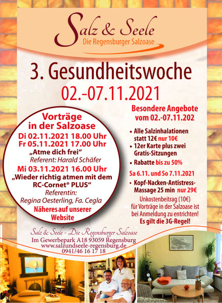 Da in unserer Salzoase nur begrenzt Platz zur Verfügung steht, bitten wir baldmöglichst um Ihre verbindliche Anmeldung zu den Vorträgen